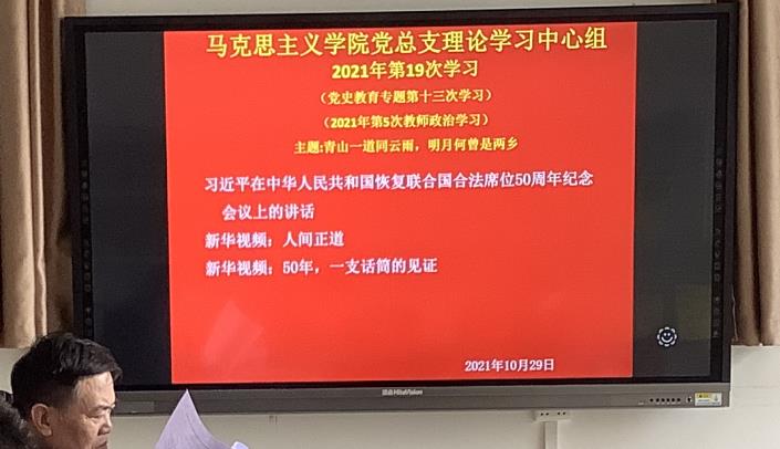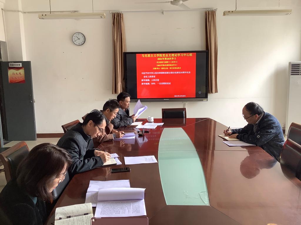 10月29日,我院理论学习中心组组织了2021年第19次理论学习暨党史教育第十三次专题学习。学习由我院党总支临时负责人主持,学院党总支全体委员、各支部书记、党总支秘书参加了学习。