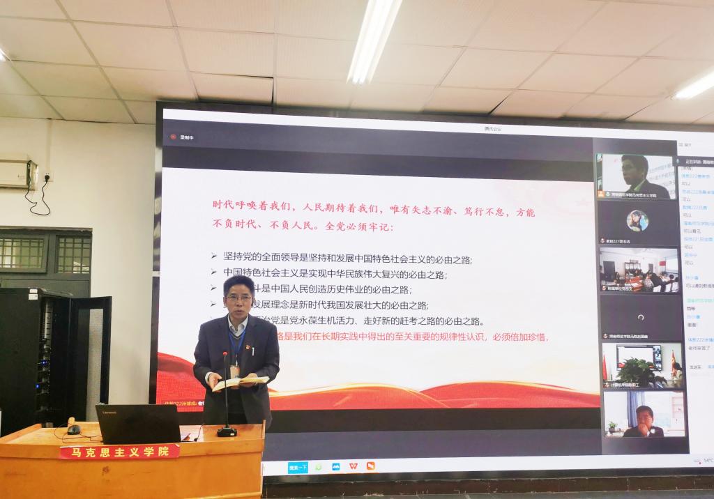 学院党总支书记赵国峰在总结本场报告时认为,刘先春教授的报告内容全面,既系统,又突出重点,既有党的二十大精神解读,又有党的二十大精神宣讲指导,达到了使我校师生进一步全面、深入了解、领会党的二十大精神,提高我院教师讲全、讲准、讲好党的二十大精神能力的目的。赵国峰同时要求我院教师要继续全面、深入学习党的二十大精神,多听、多看权威宣讲、权威解读。思政课各教研室、其它课程团队或任课教师要在集体备课、深入学习的基础上尽快将党的二十大精神融入课程教学。