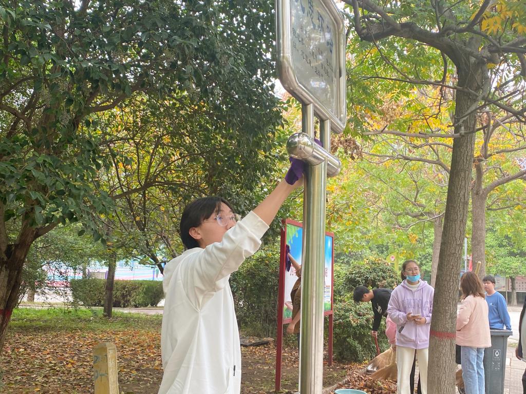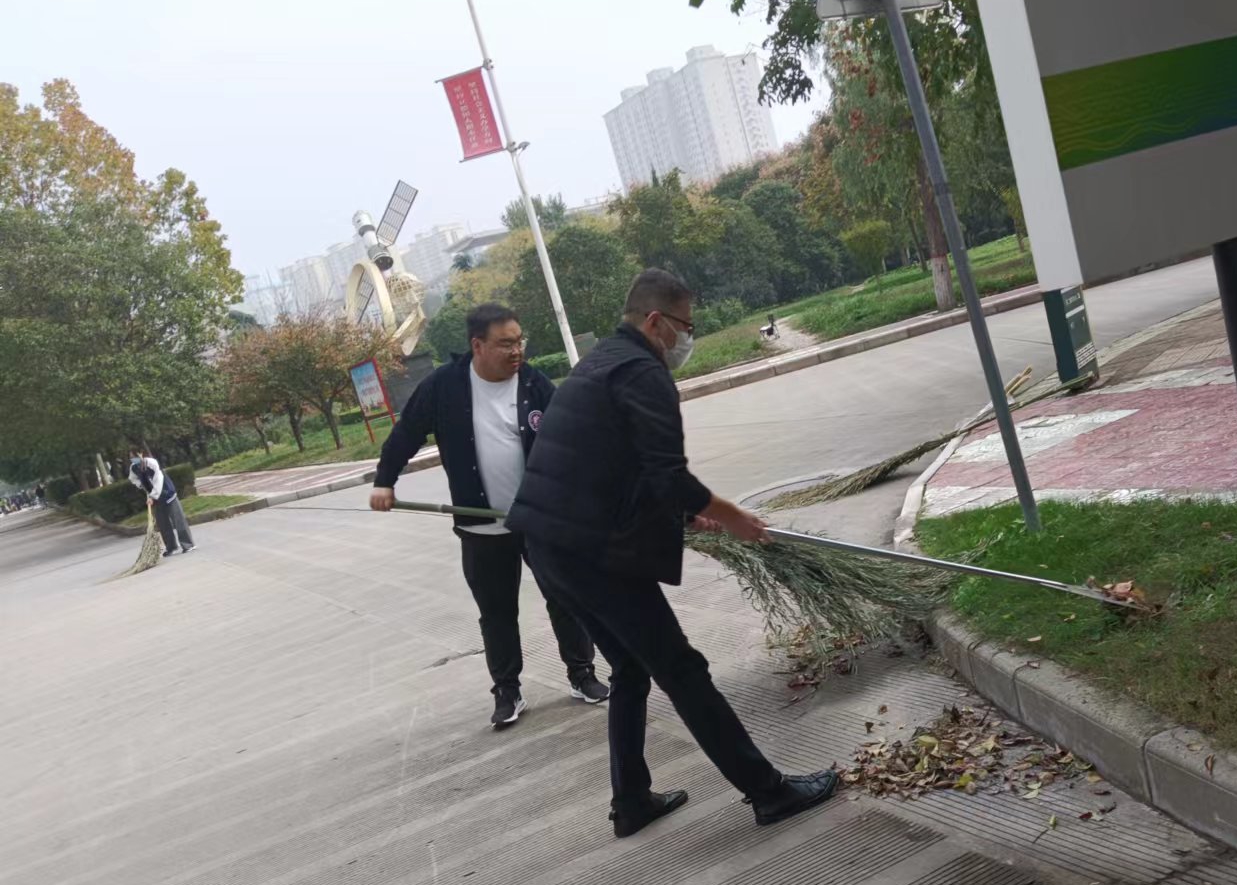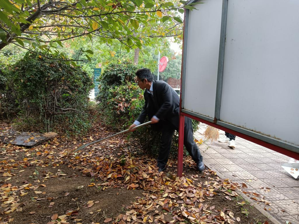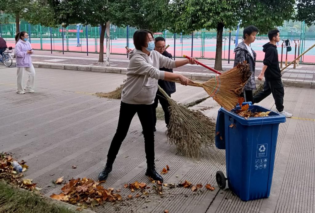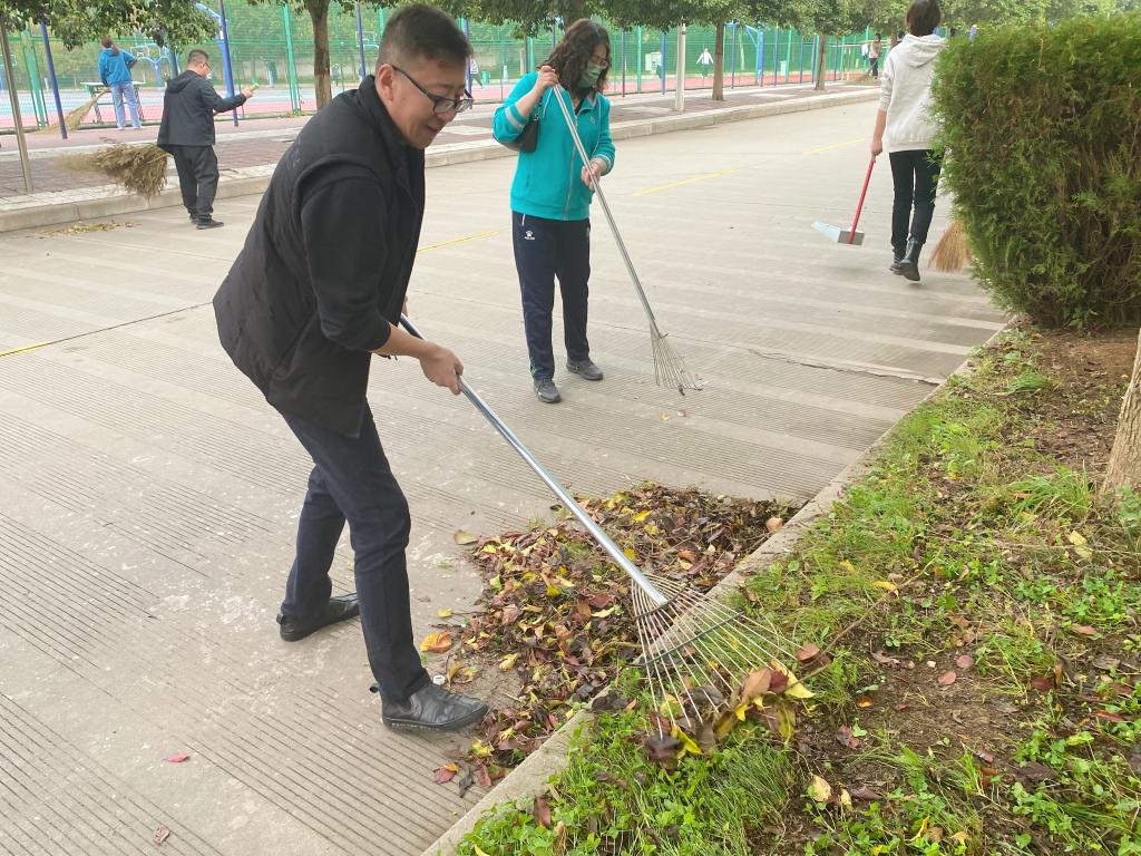 劳动教育洁保课轮值班部分同学、我院党政领导和分管劳动教育的领导、我院学工办负责人、校园清洁包联我院的学科办等职能部门处科级干部、联系我院的学校学生处领导一起参加了校园清洁我院责任区的环境大整治。学院合理调度,师生共同劳动,在日常保洁的基础上,对绿化区的落叶做了彻底清理,对灯杆、标识牌、垃圾箱等做了全面擦拭清洁,我院校园清洁责任区的环境面貌同样大为改观。