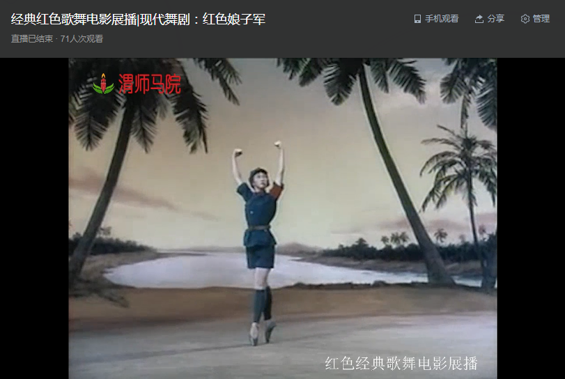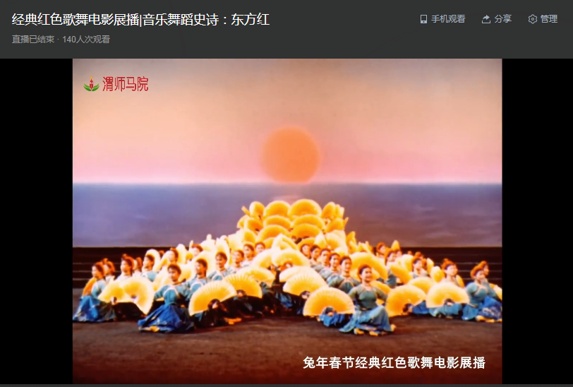 按照我院《关于在2023年春节期间开展“我们的节日•喜迎新春追梦玉兔”活动的通知》要求,我院通过我院网络党校直播系统举办了“红色经典歌舞电影展播”活动,1月26日至2月2日,基本每天一部,播出了《东方红》、《白毛女》、《红色娘子军》、《洪湖赤卫队》、《沂蒙颂》和《革命历史歌舞表演唱》等6部影片。影片全部出品于上个世纪60年代,均为中央领导人指导或得到中央领导肯定,百看不厌的经典作品,是舞蹈,特别是芭蕾舞等高雅艺术民族化的精华,是中西方艺术完美融合的典范,是革命艺术的佳作。这些作品由当时全国顶级艺术家们创作完成,虽然受当时技术条件限制,影片画面、伴音质量很差,但表演本身至今仍具有极高的艺术价值。社会普遍认为,这些作品,特别是艺术家们表演展现出的精气神至今仍然没有被超越。