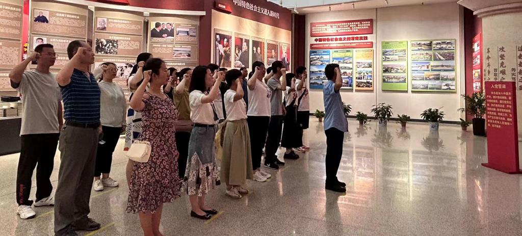 在“奋斗之路”展馆,师生观看了“确立初心——开天辟地”、“冰层初心——打到军阀”、“坚守初心——土地革命”、“涵养初心——抗战救国”、“砥砺初心——解放全中国”、“践行初心——未富起来、强起来而奋斗”等全部六个展区的全部120多名革命代表人物的图文介绍,党员现场重温了入党誓词。