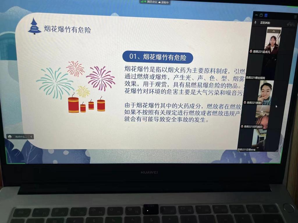 1月28日至29日,学院各团支部在辅导员指导下,组织了团支部所在班全体学生视频会议,按照学院要求,带领学生详细学习了学院发布的《假期普适安全提醒》《寒假安全提醒》《tyc33455cc太阳成集团2018年防火、灭火、火场逃生讲座》等文章、视频。部分团支部还学习了其中的《如何预防电器火灾》《诱惑吸毒常见圈套》《机动车道路使用规定(部分)》《行人、非机动车道路通行规定》等内容。