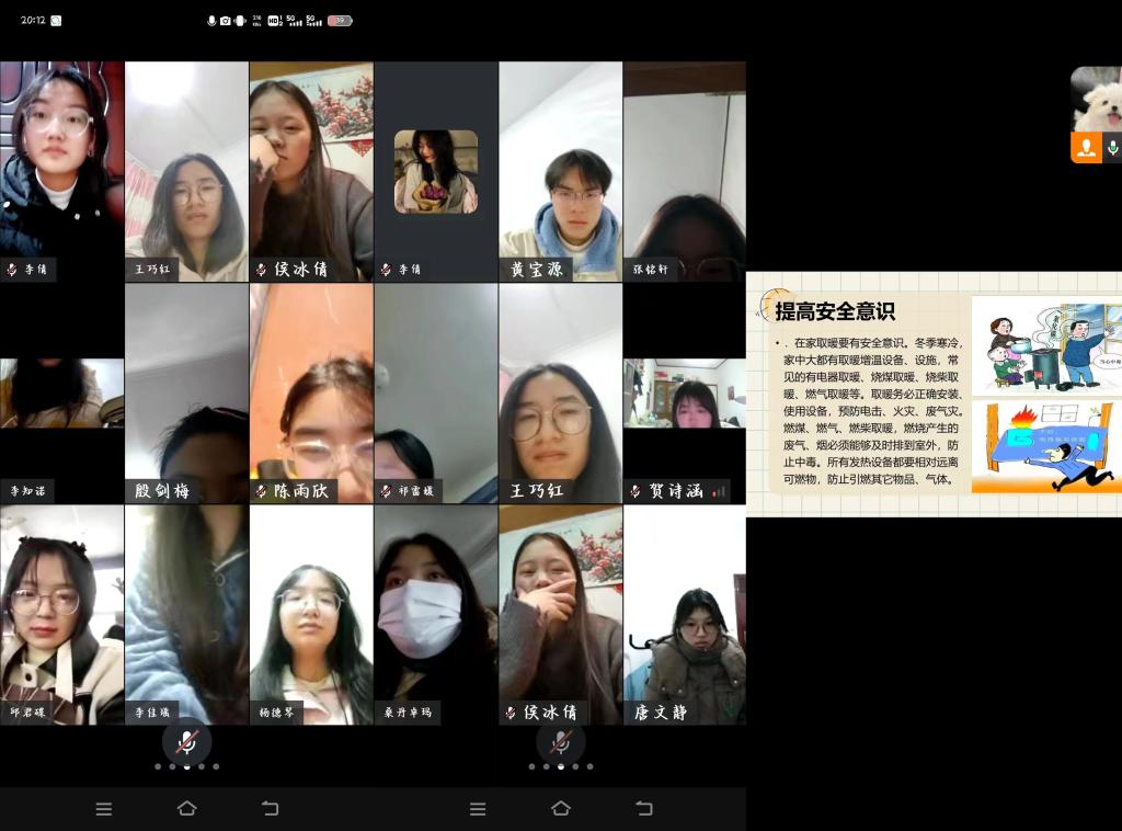 1月28日,学院召开了全体教师、各团支部书记、各班班长参加的安全工作视频会议,传达了27日省教工委、教育厅会议精神和学校领导在会后提出的要求,对学院此前有关通知、会议安排的落实做了强调,就师生居住楼宇防盗网妨碍火灾逃生、防火门不关闭、冬季滑雪风险等常见安全隐患做了提醒,对各辅导员全覆盖召开视频会议对学生进行安全知识教育做了安排。