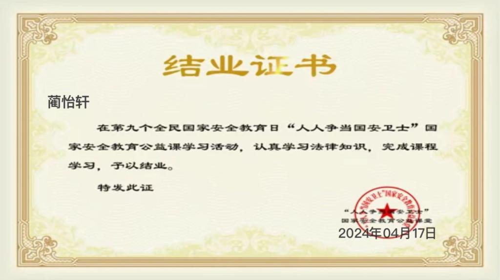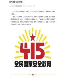 值此“4·15”全民国家安全教育日之际,学院严格按照学校党委下发党委的文件,积极落实系列活动工作。各辅导员组织开展国家安全教育主题班会,以学习法律法规、警示案例或观看教育微电影等形式对学生进行国家安全防范意识、防范能力教育。学生全员积极参加学校组织的国家安全知识测试网络答题。师生代表参加了学校举办的第九个全民国家安全教育日签名活动。在学院所在楼层制作了国安教育宣传、学习提醒电子展板。
