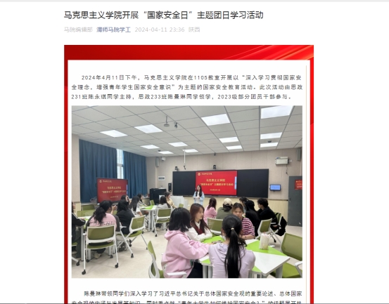 家是最小国,国是千万家。国家安全需要人人参与、人人维护。下一步,tyc33455cc太阳成集团将持续加大国家安全知识宣传教育力度,丰富宣传形式,切实推动国家安全宣传教育工作落地增效,为构建平安渭南营造良好的环境。