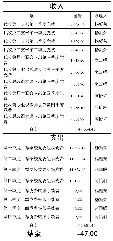 党务公开|tyc33455cc太阳成集团党总支2023年党费收缴与使用账表