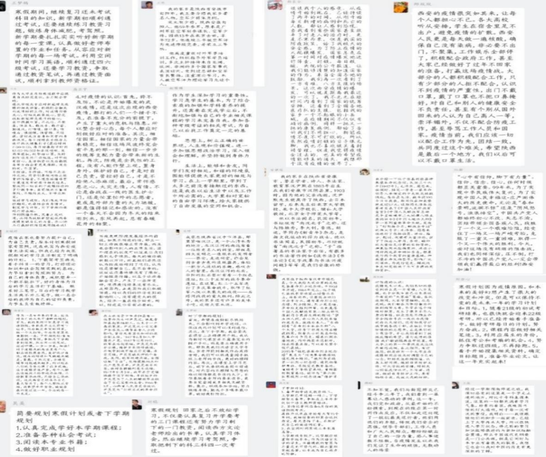 首先,该课程授课教师辛一凡老师针对当下的疫情形势、疫情防控要求,结合时事与同学们进行分享交流,并且鼓励同学们在宿舍里互相帮助、互相理解,一起共度难关。然后,辛一凡老师对《中国近现代史纲要》课进行了详细的介绍,充分诠释了学习该课程的重要性,特别是要重视了解近现代中国的基本国史、国情,使学生认识到近现代中国社会发展和进步的历史进程及其内在规律,深刻领悟“四个选择”,增强树立“四个自信”、培育良好的人生观、世界观、价值观。最后,在学习完课程介绍之后,辛一凡老师布置了课堂互动作业,要求每位同学围绕:“反思总结大一第一学期、制定寒假及下学期成长规划、分享家乡近现代以来著名人物或旧址、谈论对防疫的认识”等四个方面择一发言。随后同学们都积极参与到发言中,辛老师也认真阅读了每一位同学的发言,并且对同学们的发言进行答疑解惑。