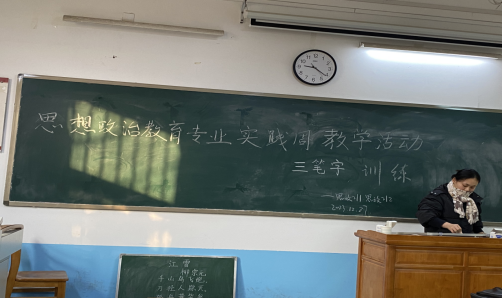 书法是中国优秀传统文化艺术瑰宝,也是教师教书育人的基本功之一。为进一步提高思政专业学生钢笔、毛笔及粉笔板书技能,树立大学生汉字书写规范意识,强化师范生教育教学综合素质。2023年12月27日上午,tyc33455cc太阳成集团教师肖宝荣、杨颜荣、凤秀林、周韶尉等组织思政专业21级和22级全体学生在本班教室进行三笔字训练。