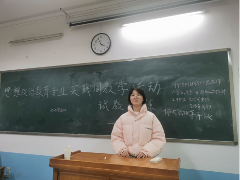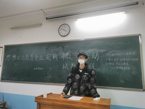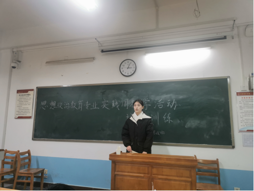 2023年12月26日下午,2021级思想政治教育专业开展了实践周活动——试教训练。活动由思政211、212班主任肖宝荣老师、杨颜荣老师主持,思政21级全体学生参加。