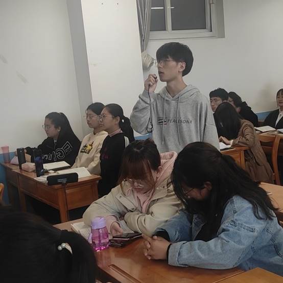 同学们完成课前导入演讲后,白赵峰老师进行点评打分,并让每个小组成员和其他听课同学说出存在的问题。白赵峰老师对每组的演讲都进行客观公正的评价,对于表现好的地方给予高度的赞扬与肯定,对于不好的部分也是毫不留情的批评。