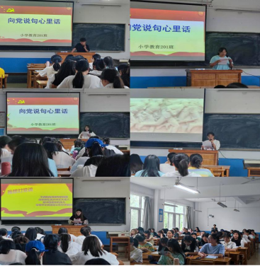 2021年5月25日,在卢老师的组织下,教育科学学院小学教育201班在中国近现代史纲要课程上开展了“向党说句心里话”演讲活动。全班40名同学组成5个小组,每个小组分工协作,一起努力,共同准备演讲稿,最后每组推荐出一名同学进行演讲。课堂上,5个小组的同学代表依次上台演讲,其他同学聚精会神认真听讲。演讲结束后,卢老师对同学们精心准备、积极参与课堂教学改革活动所付出的努力表示感谢,并对每位同学的演讲从文稿内容、声音情绪、体态语言等多方面都进行了精心点评,她鼓励同学们再接再厉。最后,她告知同学们:世界上唯有两样东西不变,一个是高悬的日月星辰,另一个是深藏在我们内心的家国情怀。艰难岁月里,党是一团不灭的火,把希望播撒在人们的内心;和平年代中,党是一盏长明的灯,引导前行的步伐,岁月的风尘永远掩盖不住党的风华。此次演讲活动在卢老师的精心组织和同学们的积极参与下顺利展开并圆满完成。