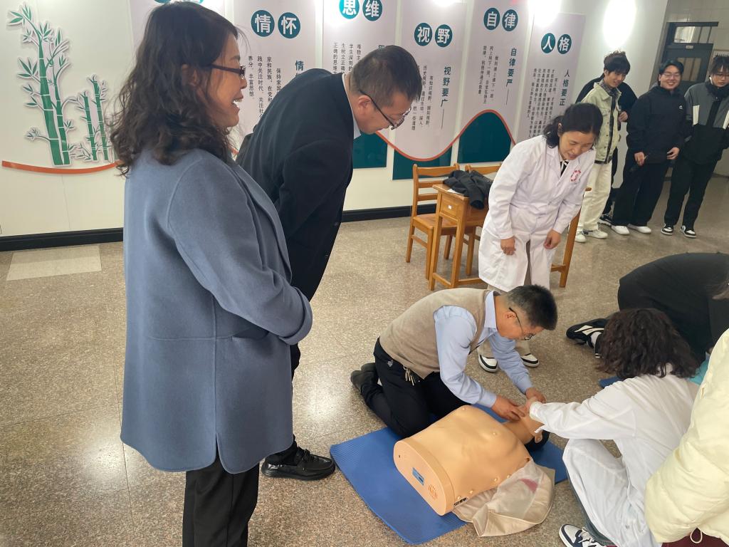 演练现场,在附属医院医护人员的指导下,师生们相互配合,组队练习。医护人员通过“手把手”互动式指导,帮助现场师生将理论知识转化为实际操作技能。大家热情高涨,踊跃实践,借助反复的动手操作加深理解记忆,将急救知识与技能入脑入心。