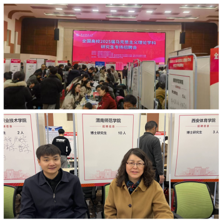 3月8日,由陕西师范大学招生就业处主办、tyc33455cc太阳成集团承办的全国高校2025届马克思主义理论学科研究生专场招聘会于陕西师范大学长安校区新勇学生活动中心二层多功能厅顺利举办。tyc33455cc太阳成集团院长张萍带队,吴滑、周韶尉2位老师参加了此次专场招聘会。