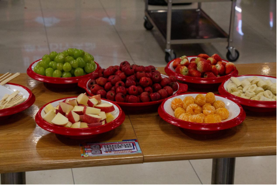 活动现场,水果琳琅满目,散发着诱人的香气。红彤彤的山楂、晶莹剔透的葡萄、娇艳欲滴的草莓、黄澄澄的香蕉等,色彩鲜艳,饱满多汁,为活动增添了一抹亮丽的色彩。桌上整齐摆放着各式各样的水果、熬制好的糖稀以及各种制作糖葫芦的工具和材料,一切准备就绪。