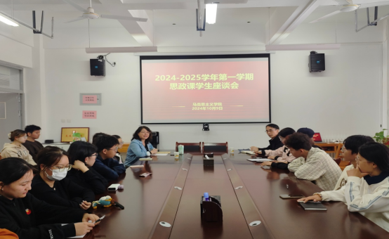 在随后的思政课学生座谈会上,美术、传媒和经管学院的40多名学生代表结合自身上思政课的情况,谈感想、提建议,畅所欲言。认为任课教师认真负责,精心备课授课,注重课堂管理,也反映有个别老师存在教学进度快、声音小等问题,并提出了多用案例教学和加强师生互动等意见或者建议,提升思政课教学效果。