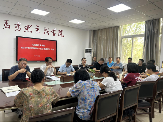 会上,张萍传达了学校新学期工作会议精神,介绍了学院新引进教师,通报了教师到岗情况,同时对新学期日常工作、教学科研、学科建设、人才培养等方面进行了总体部署。强调全体教师要提高政治站位,把学习宣传阐释党的二十届三中全会精神作为首要政治任务,把党的最新理论融入思政课教学,积极开展相关研究。教学方面,立足教材和课件,开展全面深入的集体备课,创新教学方法,提高教学质量和效果;学科建设方面,鼓励支持教师参与科研活动,加强学术交流与合作,提升学院的科研实力和影响力。