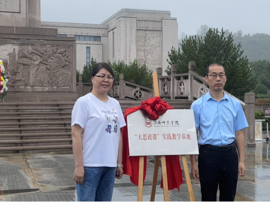 上午9点,全体师生到达扶眉战役广场,在革命烈士纪念碑前,举行了庄重的悼念仪式,全体师生默哀,向革命先烈三鞠躬,深切缅怀革命先烈的丰功伟绩,寄托对革命先烈的无限哀思。思政课教师代表周韶尉、关帅向纪念碑敬献花篮,tyc33455cc太阳成集团党总支书记赵国峰,院长张萍上前整理挽联并鞠躬悼念。张萍院长与韩伟副馆长共同为tyc33455cc太阳成集团与扶眉战役纪念馆共建“大思政课”实践教学基地揭牌。