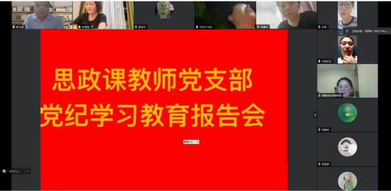为了更好的迎接党的生日,6月27日晚,我院思政课教师党支部开展了党支部书记讲党课活动。活动采取线上形式开展,大多数党员全程视频学习。支部书记通过基层党员的政治素养、科学精神、公共服务三个部分来报告。结合思政课教师工作实际,再次强调党员同志们要牢牢树立“四个意识”与“四有好老师”的信仰与标杆,为党育人,为国育才。