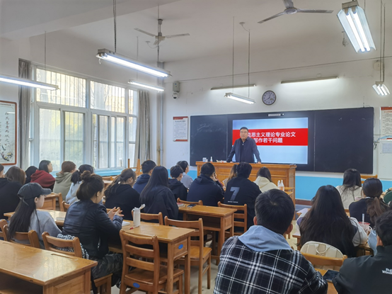 随后,郑嘉禹博士以《马克思主义理论专业论文写作若干问题 》为题做专题报告。郑嘉禹博士从马克思主义理论专业介绍、发展前景、就业方向等方面做了详细介绍,深入分析了马克思主义理论专业学术论文创作的十大问题,并为学生考研提供了具体方向。整场报告气氛愉快,内容逻辑严密,语言风趣幽默,切合学生实际,引起了学生的热烈反响。