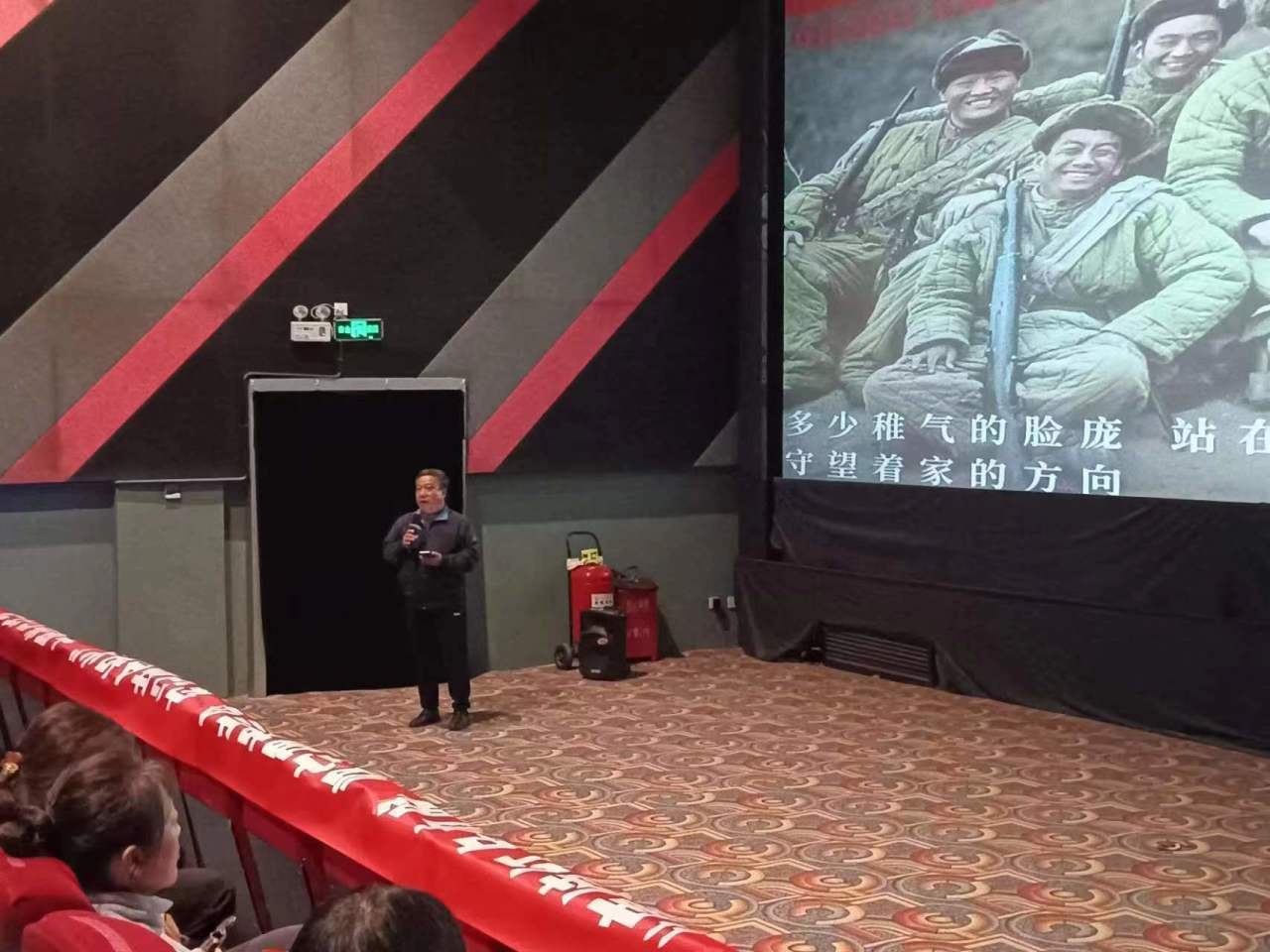 电影放映前,我校人文学院历史系主任王文涛老师以弘扬抗美援朝精神为主题,和到场党员重温了抗美援朝战争的背景和重大政治意义。