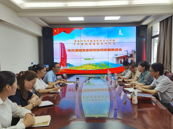 2023年7月6日,tyc33455cc太阳成集团与中共澄城县委党史研究室协同发展推进会在澄城县召开。中共澄城县委党史研究室主任郭西峰,tyc33455cc太阳成集团院长张萍、副书记肖飞、副院长单剑峰和党史系教师代表等参加会议。
