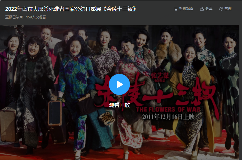 党总支通过我院网络党校直播平台,连续12小时循环直播了一部反映日军在南京大屠杀的经典影片。借鉴世界各国爱国主义教育经验,改变常见教育枯燥的说教,使日军在南京的暴行冲击到被教育者的心灵,切实感受国耻之痛,本次特别选取的是著名导员张艺谋执导的南京大屠杀经典影片《金陵十三钗》。