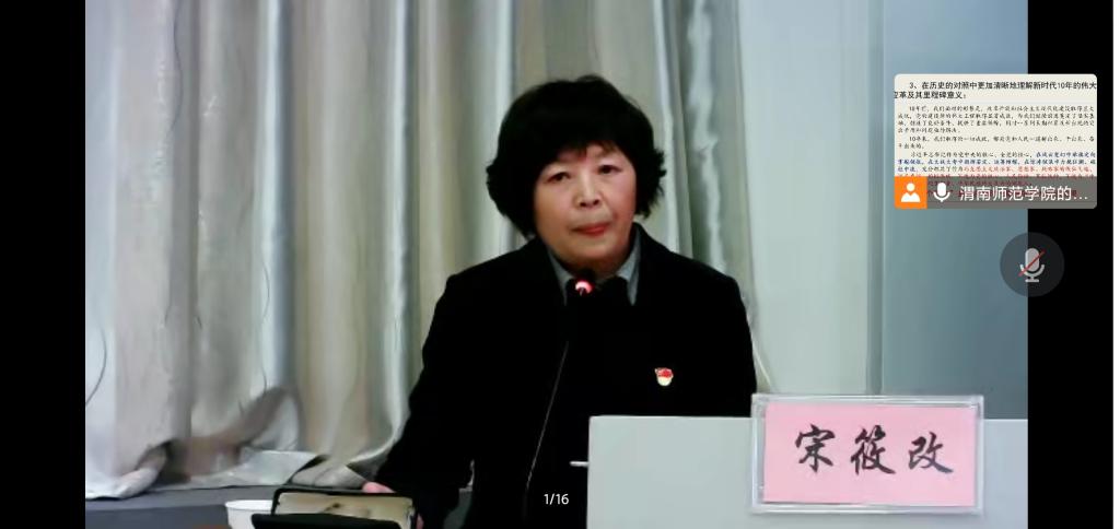报告会由渭南市委宣讲团成员,渭南市委党校副校长宋筱改教授主讲,我院党总支书记主持。我院当时无课的在校部分思政课教师、学校学工部全体教师、校团委全体教师、学校部分辅导员、学校各党支部书记共140多人在报告会现场或通过网络直播听讲。
