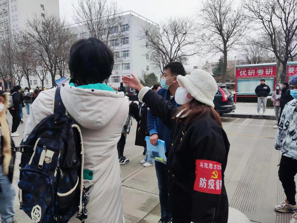 两天来,5名党员不惧严寒和染病危险,不仅积极引导学生按规定就餐,而且热情帮助校外考生解决遇到的困难。据不完全统计,5名同学累计帮助200多人次校外考生快速找到了考场、核酸检测地点、午间休息日,40多次提醒学生佩戴口罩,为考生顺利应考和学校防疫尽到了共产党员应尽的义务。