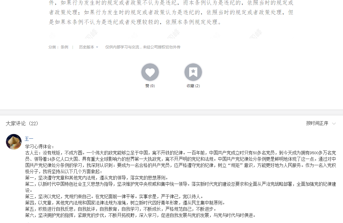 自学研修由学员在11月29日至12月5日期间自主学习,并撰写心得体会。所有参训学员均按安排自学了指定的六篇学习材料中至少四篇,绝大部分学员在要求的时间内发表了学习心得。为了方便学员,并可以使学员互相学习,本次自学材料均发布在我院网络党校,学员学习后直接在材料后评论区发表心得。材料及发表的心得面向我院师生公开。