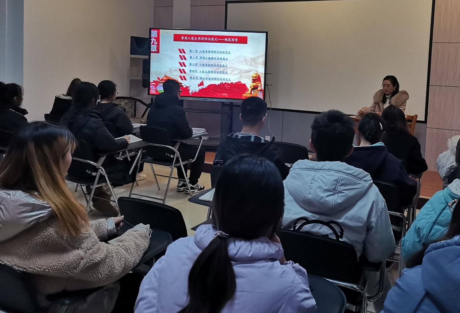 集中学习期间,先后由党总支副书记赵国峰、党总支秘书杨颜荣、党总支委员马忠智三位老师以入党的条件与程序、入党常用文书写作、十九届六中全会精神为主题作了三次专题讲座。针对集中学习内容,分党校通过我院网络党校考试系统组织了无纸化考试。试题从题库中随机生成,一人一卷。