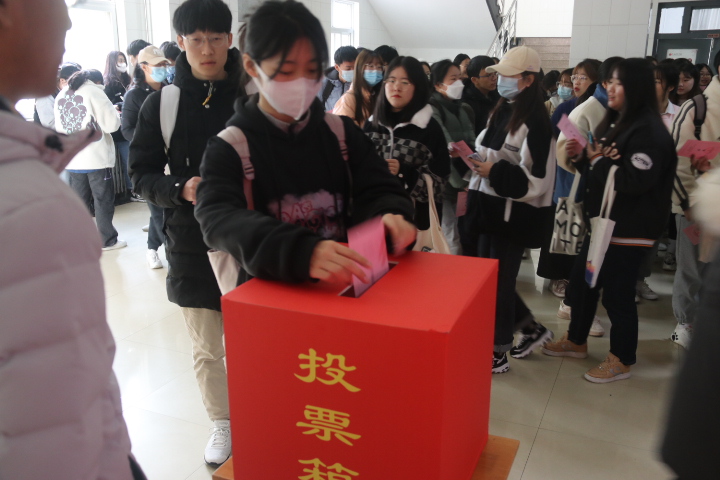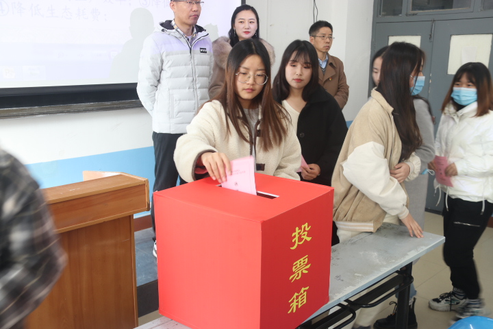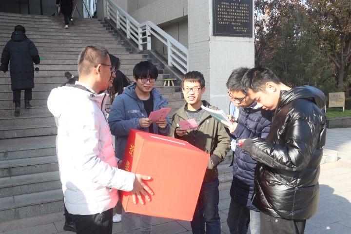 在投票阶段,为了在按时、按规定、按程序完成投票工作的前提下,最大程度降低投票对正常教学秩序的影响,方便师生,提高效率,我院针对不同群体实际,采取了多种投票方式。对无课学生,在投票站集体投票;对教师,根据自己时间,在规定的时间段在投票站自行投票;对上课学生、在图书馆学习的学生,设立流动票箱,由计票人、监票人到教室、图书馆组织学生就地投票。