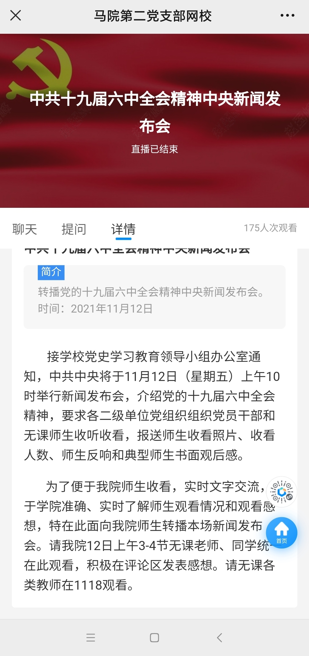 今天上午,中央举行了十九届六中全会精神新闻发布会,我院至少200名以上师生集体或单独观看。