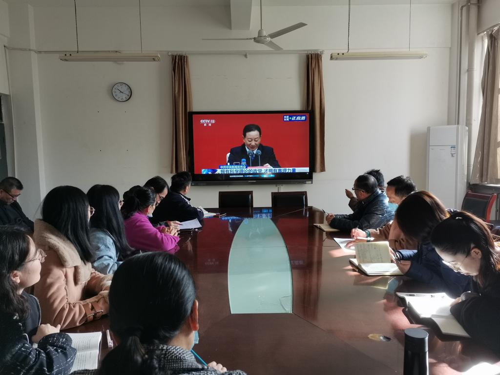 在学院会议室,20多名教师集体观看了直播。直播结束后,学院院长、总支临时负责人对全会精神进课堂作了初步安排,要求学院要迅速将全会精神合理融入课程教学。思政课部各教研室要在学院指导下,形成全会精神进课堂指导意见或具体方案。有条件的,要尽量在计划的教学体系中渗透全会精神。没有条件的,可以从原教学计划中分割一定时间单独宣讲全会精神。