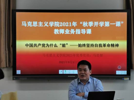 马忠智从历史和现实两个方面进行多维度分析中国共产党为什么“能”,历史是最响亮的宣言,现实是最有力的证据。中国共产党之“能”,已经是任何人、任何势力都不可否认的事实。分别从“科学认识自我革命的哲学依据”,“准确把握自我革命的理论阐释”,“系统认识勇于自我革命的伟大实践”,“系统认识勇于自我革命的伟大实践”四个层面详细讲述了中国共产党为什么“能”的具体根源。马老师认为,在新的历史起点上,我们必须矢志践行初心使命,彰显自我革命这一最鲜明的品格和最大的优势,以党的自我革命推进社会革命,在全面建设社会主义现代化国家新征程上团结带领人民取得新的更大胜利。这为我院广大教师如何做好立德树人工作讲好“开学第一课”提供了良好的借鉴指导。(通讯员:周韶尉,审核:赵国峰)