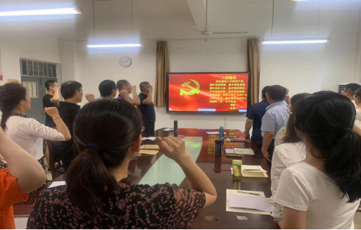 会议伊始,举行了重温入党誓词活动,这既是对建党100周年的隆重纪念,也是对党员思想上的洗礼,更是对牢记使命,不忘初心的鞭策。