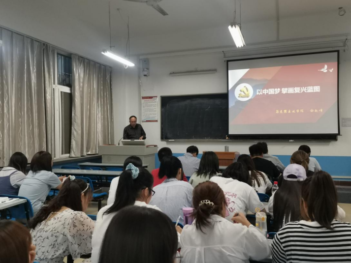 开班仪式后,白赵峰教授为参训学员讲授了《以中国梦,擎画复兴蓝图》为主题的专题党课。白赵峰教授用生动形象的讲述,通俗易懂的语言分别从“中国梦与中华民族的伟大复兴”、“中国梦与新时代”、“中国梦的世界视野”三个角度全面的讲述了中国梦与中华民族复兴蓝图的关系及深刻内涵。使参训同学更加深刻的认识到了中国共产党的初心使命,理解了新时代与中国梦的重要意义。对于提高参训学员的思想认识和理论素养具有重要的作用。(通讯员:岳攀)