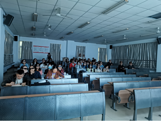 为进一步激发广大党员学习党史的主动性和积极性,增强学习效果,4月28日晚,tyc33455cc太阳成集团组织党史学习教育红色观影活动,全体师生党员和部分学生代表在3D虚拟仿真体验中心共同观看了重大革命历史题材影片《智取威虎山3D》。