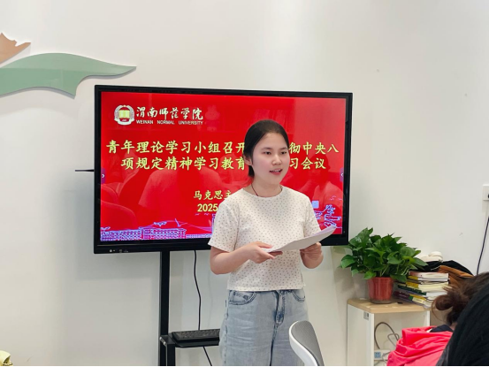 2025 年 6 月 9 日下午,tyc33455cc太阳成集团青年理论学习小组在学校“一站式”学生社区服务中心召开深入贯彻中央八项规定精神学习教育专题学习会议。学院辅导员陈晨、部分学生骨干以及入党积极分子参加。