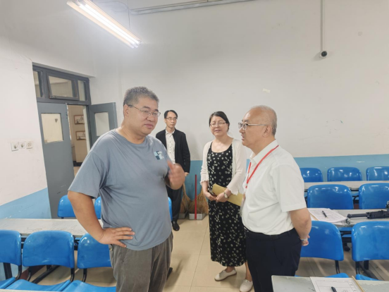 9月4日下午,党委副书记袁亮率领相关职能部门负责人前往tyc33455cc太阳成集团,对开学准备工作展开全面检查,并深入教室听课,为新学期学院各项工作的有序推进筑牢根基。