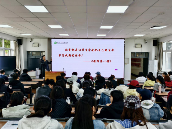 10月31日上午,陕西省思政课教师大练兵特等奖获得者、西安市雁塔区学科带头人、陕西师大附中冯晨老师在1101教室为思想政治教育专业2025级同学作题为《以“乐为、敢为、有为”之心铸就思政课教师精彩人生》的讲座。讲座由辅导员陈晨主持。
