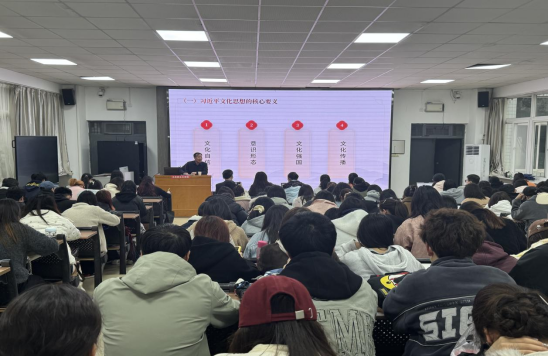 2025年11月7日上午,长安大学tyc33455cc太阳成集团博士生导师、国务院特殊津贴专家、二级教授刘吉发在1101为tyc33455cc太阳成集团师生作题为“从习近平文化思想到加快文化产业发展”的报告,学院中青年骨干教师和2023级、2025级思想政治教育专业学生参加。副院长单剑峰主持。