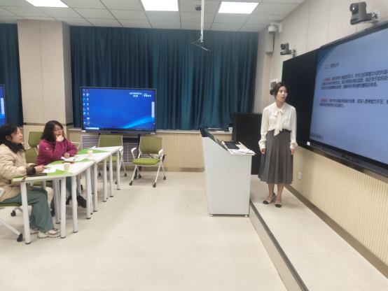 在磨课过程中,三位同学分别讲授了自己的参赛内容,并与指导教师就各自选题、思路、内容以及表现形式等进行了讨论,申弋老师就大赛的评审标准、核心素养、教学内容与形式、创新点、语言表达、教师形态等方面进行了细致点评,并给出了具体的修改意见。