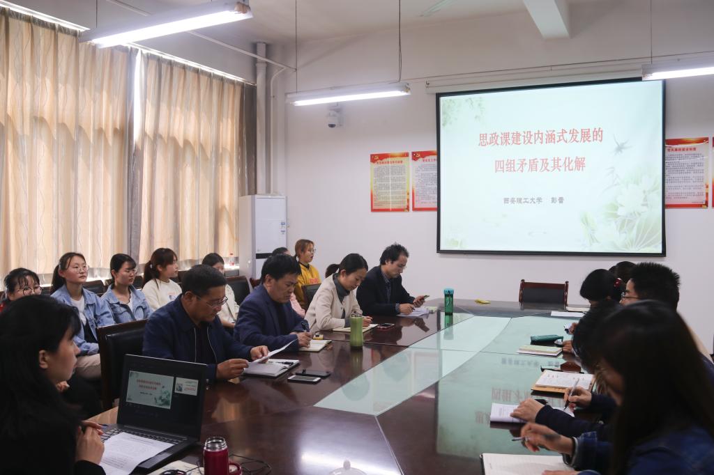 4月12日下午,2018年“陕西思政课大练兵教学标兵”获得者——西安理工大学彭蕾副教授应tyc33455cc太阳成集团之邀做了题为《思政课建设内涵式发展的四组矛盾及其化解》主题报告。
