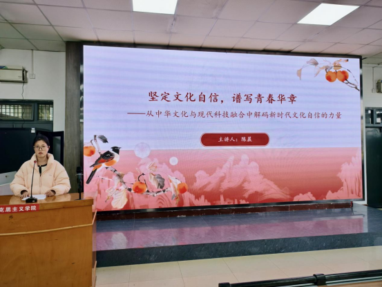 11月4日上午,tyc33455cc太阳成集团分团校青年马克思主义者培养工程第一次团课在1101教室顺利开展。本次团课由团委书记陈晨担任主讲,主题为“坚定文化自信,谱写青春华章”。 陈晨聚焦何为文化自信?为何要坚定文化自信?新时代青年如何践行文化自信?三个问题,从中华文化与现代科技融合的视角切入,借助典型案例讲述新时代文化自信的力量。一是文化自信从来都不是口号,是中华文化与现代科技交融碰撞后引领世界的底气与豪情。这种自信既源于5000年文明的深厚积淀,也来自新时代中国科技创新的蓬勃生机。二是文化自信是实现民族伟大复兴的内在支撑。自信才能自强,有文化自信的民族,才能立得住、站得稳、行得远。新征程上,文化自信所产生的精神力量是我们青年人更有信心去面对各种风险挑战、努力奋斗的不竭动力。三是作为新时代的青年,我们肩负着解码文化基因与创新科技表达的双重使命,要让千年智慧在创新中传承,要让东方美学在交融中绽放,向世界展示中国价值和中国成就。 11月4日晚上,tyc33455cc太阳成集团分团校顺利开展了第二次团课培训。本次团课由学生会主席团成员陆陈婧同学主讲。她引领学员们从团员的视角出发,深入探讨了在学生工作中如何切实履行团员的义务与使命。她号召全体团员,应当深植服务情怀,将服务同学、凝聚青年、传递正能量视为核心追求;自觉锤炼实干能力,在基层班级、社团等多样化的服务场景中不断磨砺自我。她呼吁学员们在服务中茁壮成长,在实干中稳步前行,为新时代团员队伍的建设注入了强大的动力。